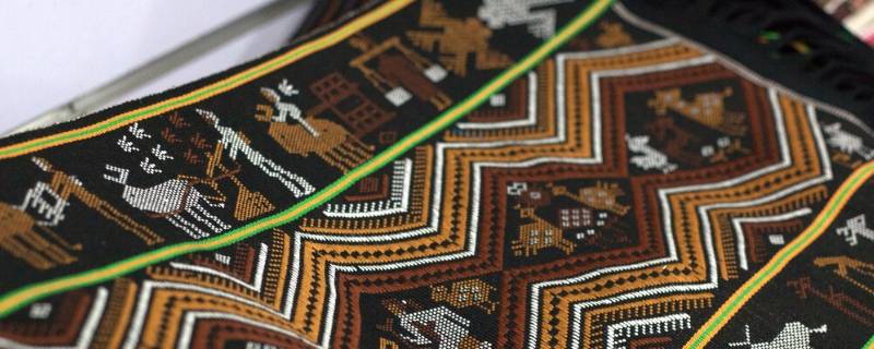黎族织锦图案是体现妇女的审美意识、生活风貌、文化习俗、宗教信仰及艺术积累的文化现象。其内容主要是反映黎族社会生产、生活、爱情婚姻、宗教活动以及传说中吉祥或美好形象物等。在历史的长河中,黎族织锦艺术充分显现了黎族妇女的创造才能和艺术造诣。一件艺术珍品的完成,可以说是黎族妇女的心血和结晶,也是黎族妇女智慧的集中表现。