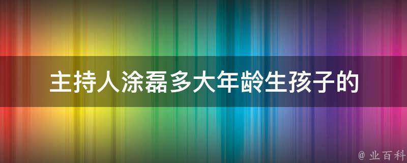 主持人涂磊39岁生孩子。涂磊早年间发文提及过,他22岁创业,27岁转行,32岁结婚,39岁有了孩子。涂磊,1977年6月10日出生于江西省南昌市,中国内地男主持人,毕业于南方冶金学院(现江西理工大学)计算机系1996级。