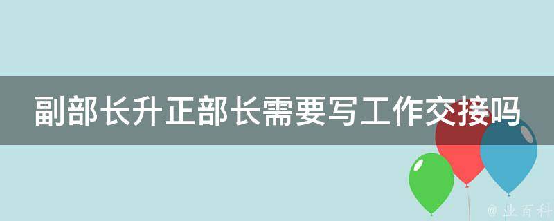 副部长升正部长需要写工作交接。由离任和接任的正处级干部进行交接,包括:本单位工作职能和工作要求、工作规划和年度计划、主要工作安排及工作进度、部门工作规范和工作制度等基本情况。正部长级是政府机构中最高级别的官员,是政府决策最高层的成员。
