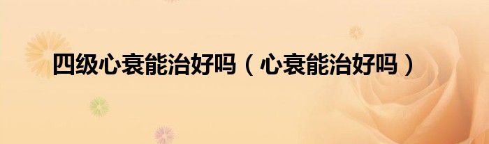 大家好,乐天来为大家解答以下的问题,四级心衰能治好吗,心衰能治好吗很多人还不知道,现在让我们一起来看看吧!