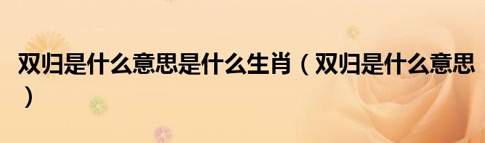 双归是什么意思是什么生肖(双归是什么意思)