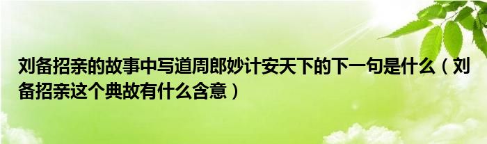 刘备招亲的故事中写道周郎妙计安天下的下一句是什么(刘备招亲这个典故有什么含意)