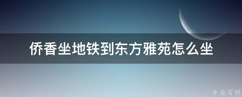 最佳答案从侨香到东方雅苑可以乘坐地铁2号线或8号线。具体路线为:从侨香站上车,乘坐地铁2号线(8号线)往盐田路地铁方向,经过11站到达益田站,然后站内换乘地铁3号线往福保方向,经过1站到达福保站,最后步行到达东方雅苑。