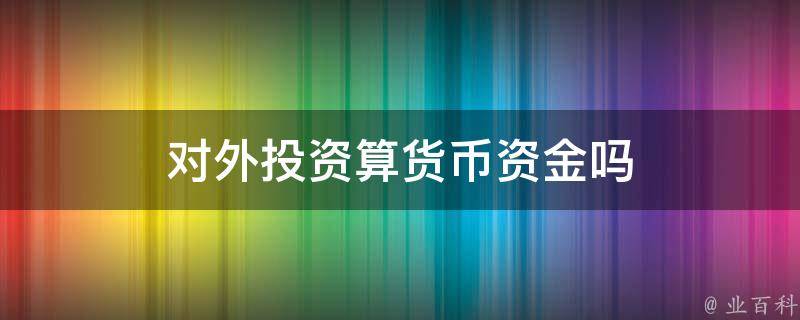 对外投资不算货币资金。对外投资是指事业单位依法利用货币资金、实物、无形资产等方式向其他单位的投资。而货币资金是指企业的资产主要包括库存现金、银行存款、银行汇票存款、银行本票存款、在途货币资金、外埠存款等和货币资金所发生的结算在现金折扣、利息收入、利息支出、相关税费等款项的流动和变化情况。