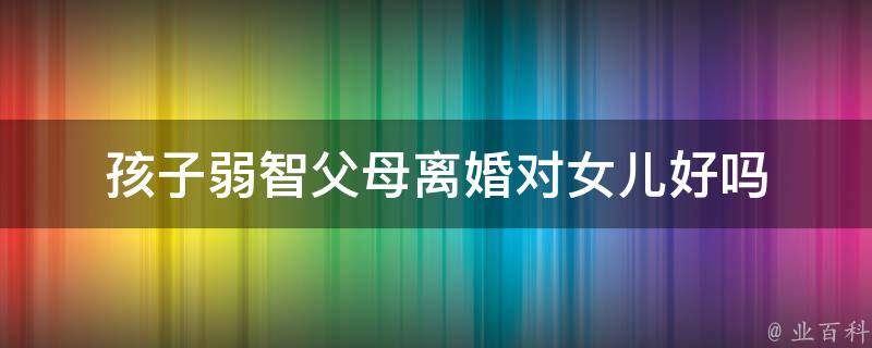 孩子弱智父母离婚对女儿不好。父母离婚可能会给女儿带来心理上的压力和情感上的困扰,因为她可能会感到被遗弃、无助和孤独。此外,如果女儿需要特殊照顾,离婚可能会影响她的生活质量和医疗保健。