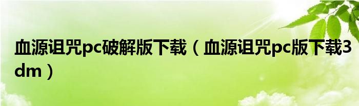 血源诅咒pc破解版下载(血源诅咒pc版下载3dm)