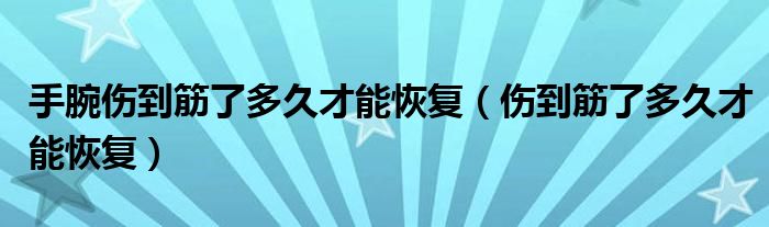大家好,乐天来为大家解答以下的问题,手腕伤到筋了多久才能恢复,伤到筋了多久才能恢复很多人还不知道,现在让我们一起来看看吧!