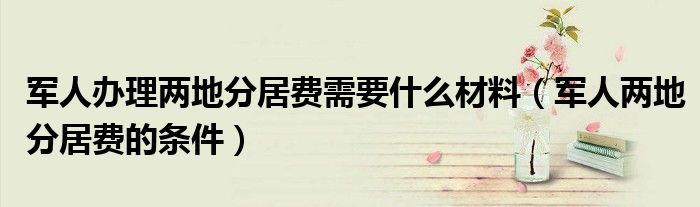 大家好,我是小科,我来为大家解答以上问题。军人办理两地分居费需要什么材料,军人两地分居费的条件很多人还不知道,现在让我们一起来看看吧!