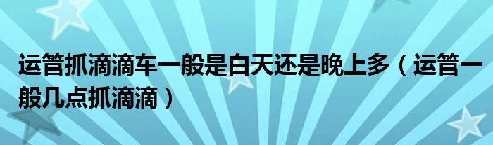 大家好,我是小科,我来为大家解答以上问题。运管抓滴滴车一般是白天还是晚上多,运管一般几点抓滴滴很多人还不知道,现在让我们一起来看看吧!
