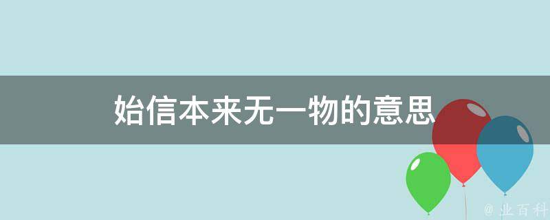 始信本来无一物的意思是:方才相信本来什么都没有,也可以理解为一无所有。古诗有云:本来无一物,何处惹尘埃。由此可见人生终究能从一而终的只有自己。比如刚出生的婴幼儿,他们都是赤身裸体的来到这个繁华大千世界,他们是最干净、最纯粹的存在。