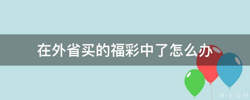 在外省买的福彩中了需要去外省兑换。彩票不能异地兑奖,但是可以在省内通兑。福利彩票中5000元以下的,在本省内任意福彩投注站就可以兑奖;中5000元以上,需到当地市福彩中心进行兑奖;中20万以上,需到本省福彩中心兑奖,到省市福彩兑奖时携带中奖彩票和有效身份证兑奖,彩票兑奖当期有效。