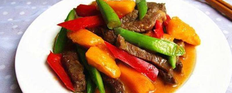 1、食材准备:牛排150克、芒果200克、芦笋2根、橄榄油、盐、彩椒、水淀粉各适量。