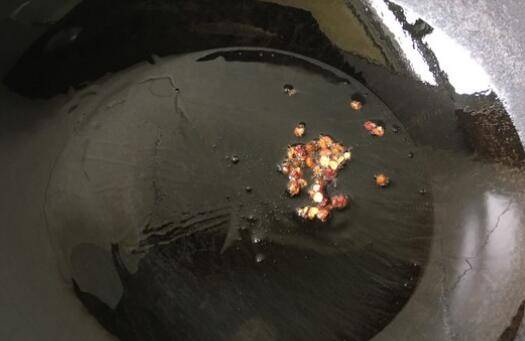 3、锅中油热后放入干花椒,炸香后捞出。