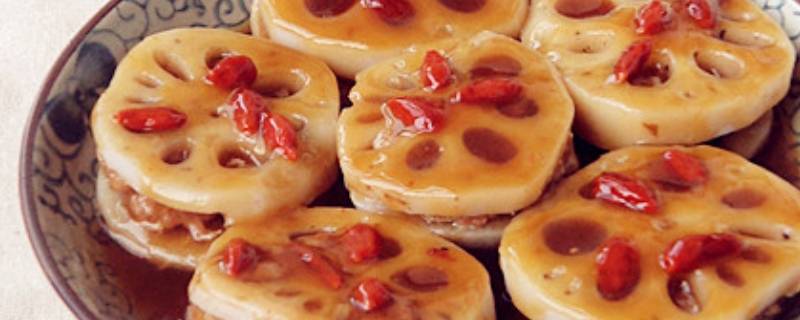 1、准备材料:藕夹6个、盐适量、白糖适量、 生抽适量、枸杞5克、胡萝卜50克。