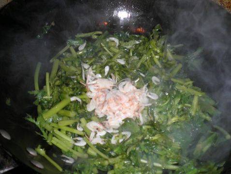用料:蒿子杆、食盐2g、葱5g、调和油10ml、虾皮。