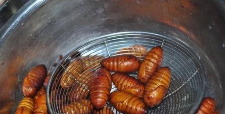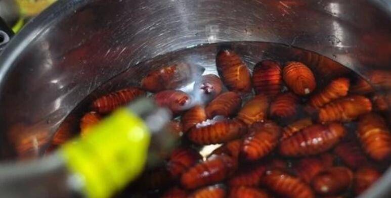 材料:蚕蛹200g、油适量、盐适量、花椒大料适量、干红椒适量、香菜适量、葱姜蒜适量、酱油适量、糖适量。