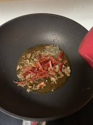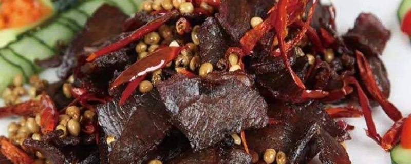 5、把牛干巴放入锅中继续大火翻炒。