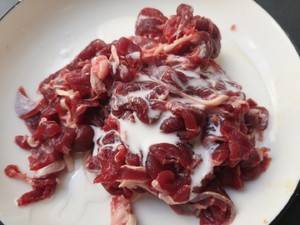1、把牛肉切成薄片,加入生抽,小鲜侣、盐充分抓匀。