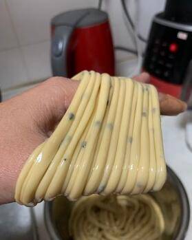 鸡蛋,芝麻,面粉,适量水,搅拌。
