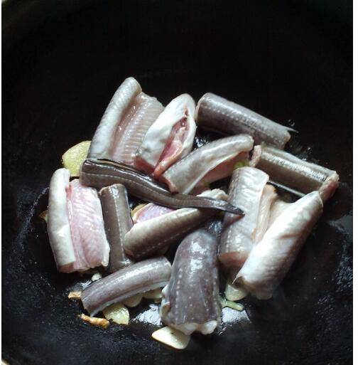 主料:鳗鱼、葱、姜。辅料:油、蒜、啤酒、味极鲜酱油、红烧汁、盐。