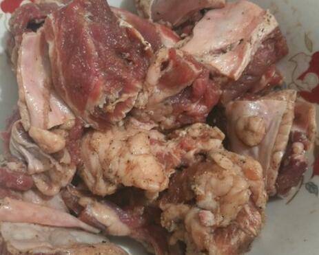 3、加入料酒、生抽、黑胡椒碎抓匀后腌制30分钟。
