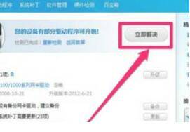 等它检测后,如果有驱动程序损坏,界面会提示要更新的驱动程序,按“立即解决”就可以了。