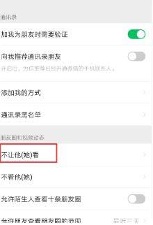 3、在朋友圈和视频动态这一栏中,点击“不让他看”。