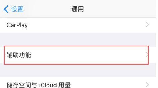 在打开的iOS通用设置页面中,我们可以看到辅助功能栏目,点击打开它;