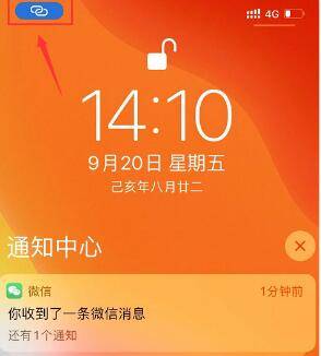 6、锁屏界面从时间窗口看到连接标志,可以看到连接的设备状态。