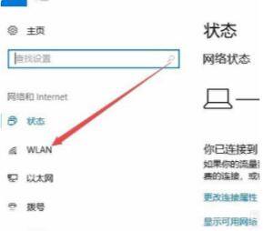 3、然后打开的网络设置窗口中,点击左侧边栏的“Wlan”选项。