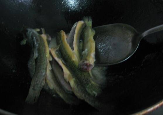 3、锅中放适量的菜油,放入泥鳅煸炒。