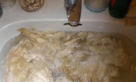 毛条洗净。将从羊身上剪下来的油毛(含油脂和杂质),去油脂除杂质。