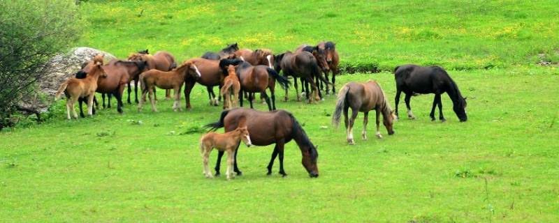 1、骏马:马喜欢群居,一般由一匹公马、几匹母马和它们的后代组成。每个种群都有明确的活动范围,并以每天5-10公里的速度迁移。马以荒漠、草原上的芨芨草、梭梭、芦苇、红柳、嫩草等为食,冬天能刨开积雪觅食枯草。