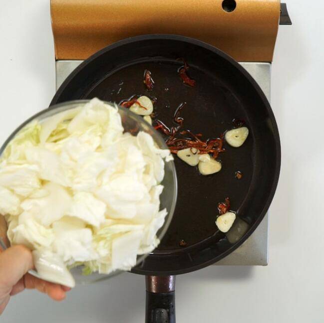 1、准备食材:白菜、食用油、花椒、蒜片、干辣椒丝、生抽、陈醋、盐。