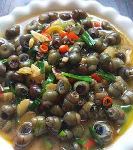 2、热锅热油,大火放入螺丝翻炒片刻加入料酒。