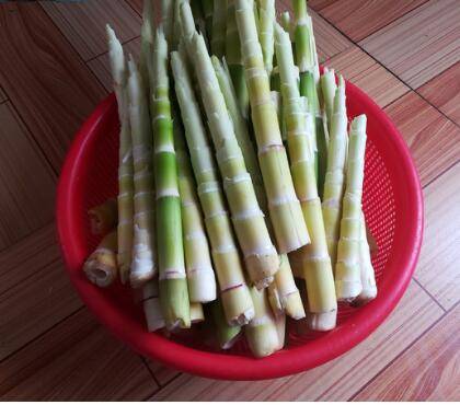 准备食材:竹笋1斤、冰糖一勺、干辣椒4个、八角2个、盐2勺、生抽3勺、香草适量。