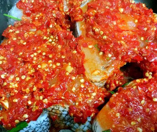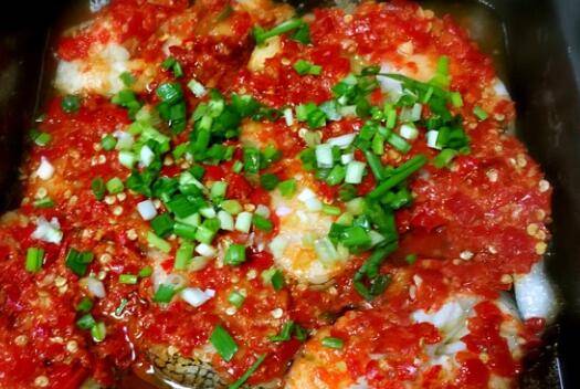 蒸好后将多余的水倒掉,另起锅烧油,油热后淋在剁椒上,一盘剁椒鳕鱼就完成了。