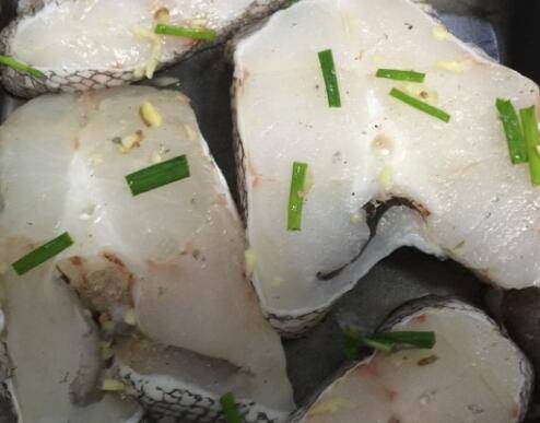 鳕鱼清洗干净用盐、料酒、姜、葱、胡椒粉腌制一小时以上,腌制后沥干水分装盘。