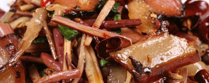 用料:春菜200克、腊肉130克、红尖椒1个、白糖1汤匙、姜1小块。
