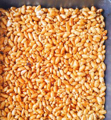 放到烤盘里面趁热压平压实,等晾凉了之后切成小块即可。