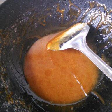 随着水分的蒸发糖渐渐变得粘稠,小火熬煮成焦糖色。