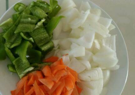 胡萝卜两根、洋葱一个、盐1勺、蒜少许、鸡精少许、油少许、十三香、蚝油。