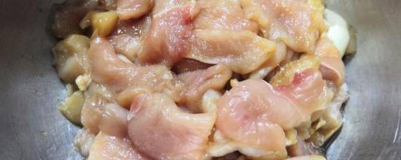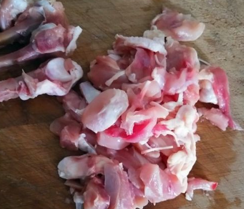 选取四个琵琶腿,清洗干净,去骨后,再切成鸡肉丁;
