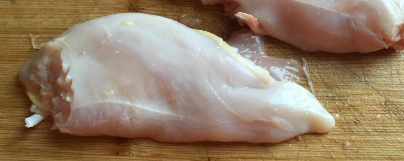 鸡胸肉洗净后改刀切片。