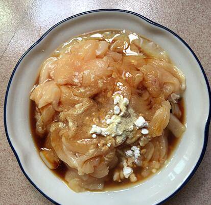 加生抽,料酒和玉米淀粉,抓匀后腌制15分钟。