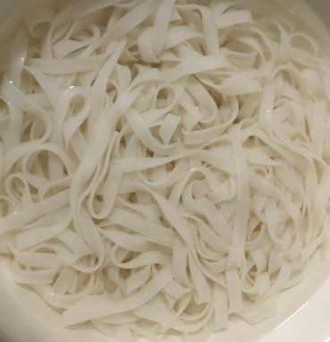 煮好的干面用凉水冲洗两遍放入加水的盆里。