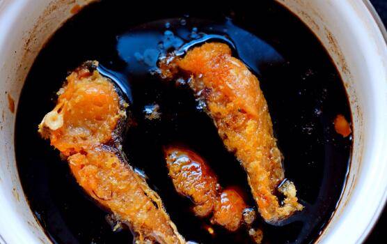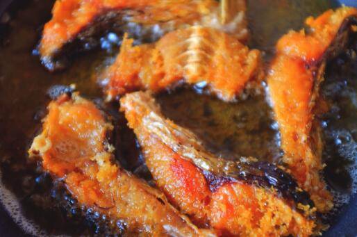 6、捞起放入酱料汁浸泡5分钟,这样入味,鱼也酥。