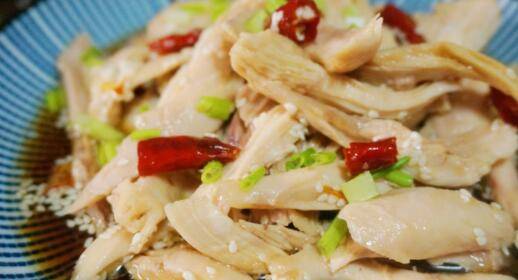 用料:鸡腿1个、酱油2勺、香醋1勺、白糖1勺、料酒2勺、盐1克、香油少许、干辣椒3个、食用油少许、白芝麻少许。