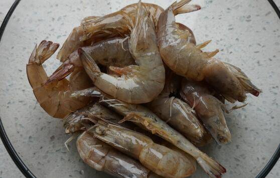 1、先把大虾开背挑去虾肠,剪去虾须。