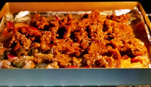 7、撤掉上面的锡纸,撒上孜然,白芝麻200度再看5分钟即可,喜欢吃辣还可以撒上些辣椒粉。